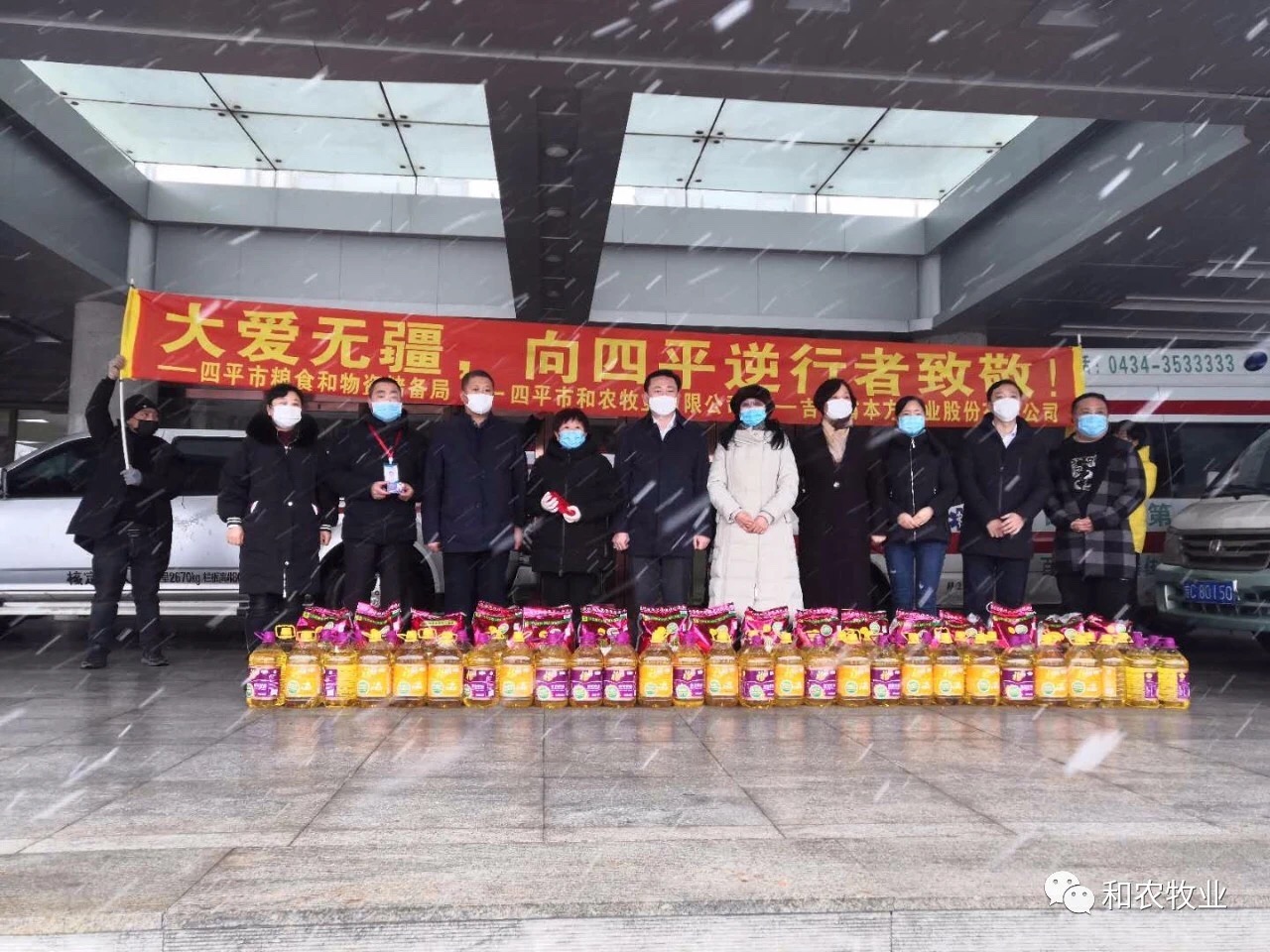 2020年2月28日由四平市糧食和物資儲備局組織,吉林和農(nóng)牧業(yè)集團(tuán)向四平市衛(wèi)健委捐贈物資大米、豆油、葵花籽油以及野蠻香黑豬肉健康卡