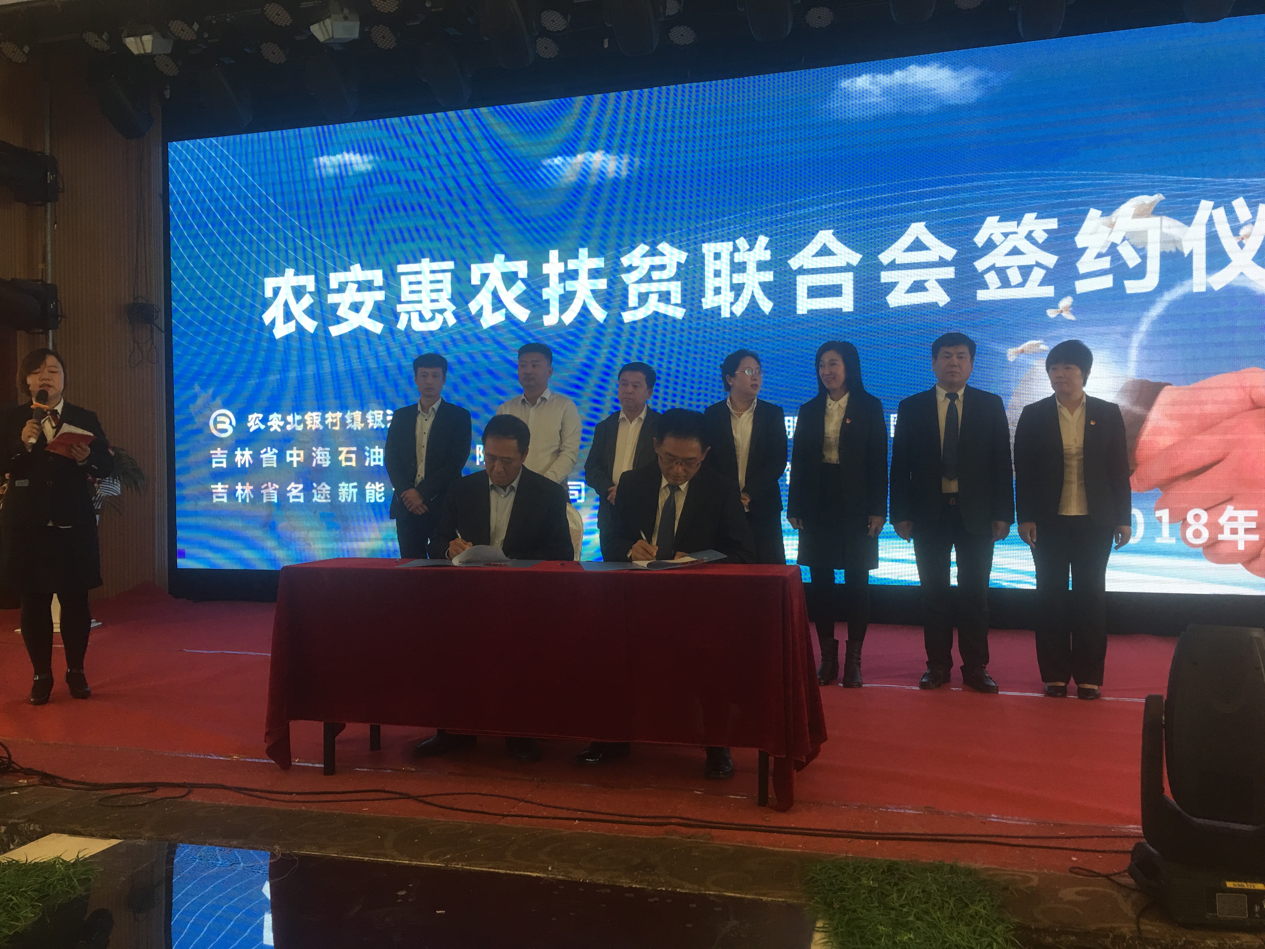 在會議上進行了農(nóng)安惠農(nóng)扶貧聯(lián)合會簽約儀式,和農(nóng)牧業(yè)集團董事長方彥明先生與農(nóng)安北銀村鎮(zhèn)銀行行長范雨新先生現(xiàn)場簽約合作。