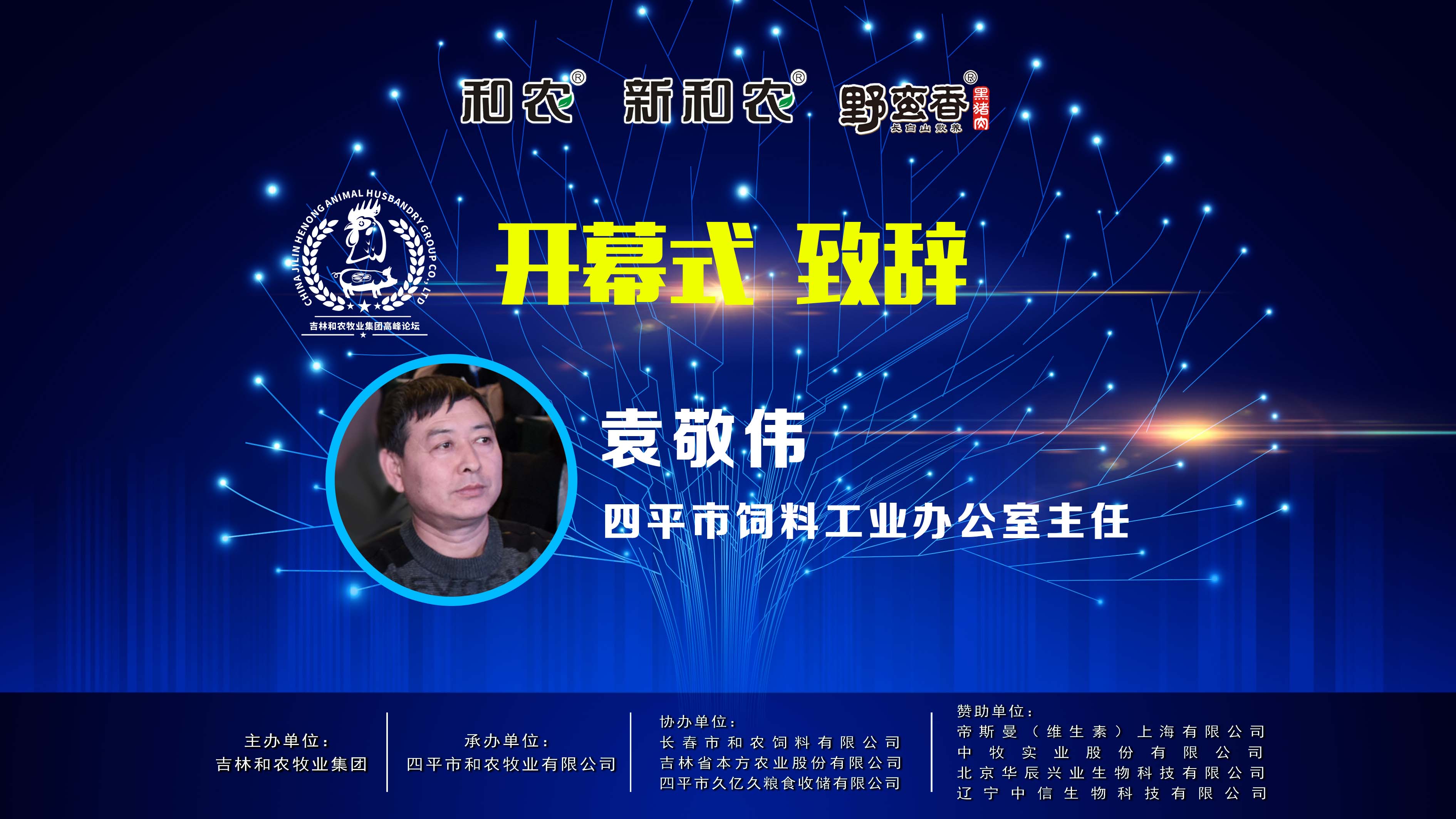 第十四屆和農牧業(yè)集團社群經濟、共享模式高峰論壇在美麗的英雄城四平市召開,飼料工業(yè)辦公室主任袁敬偉先生代表四平市農村工作委員會、四平市飼料辦對各位領導和專家的到來表示熱烈的歡迎,對和農為四平市經濟發(fā)展做出的重大貢獻表示衷心的感謝!