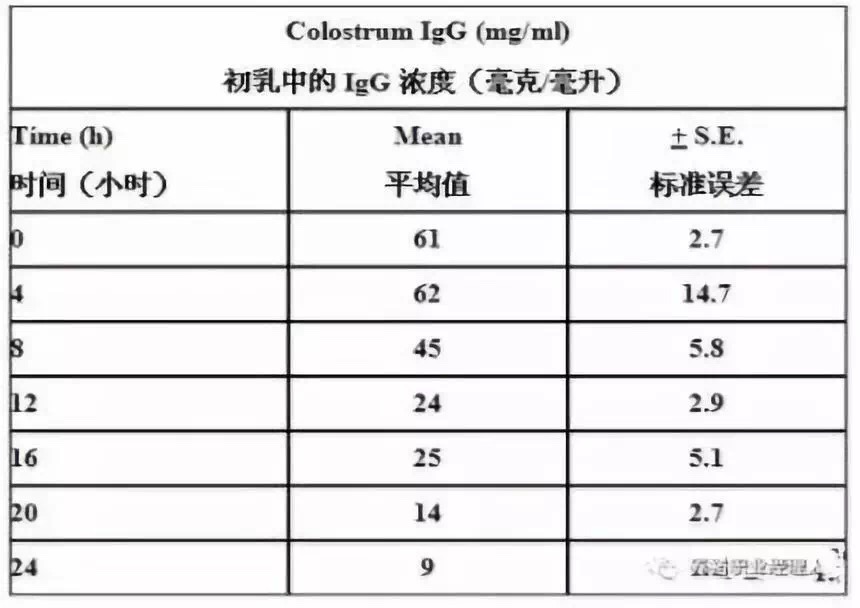 寄養(yǎng)其實對母豬和仔豬來講均是一種應激,且寄養(yǎng)易導致疾病交叉感染,所以產(chǎn)房應盡量減少寄養(yǎng),特別要嚴禁跨單元寄養(yǎng)。當產(chǎn)后母豬泌乳量嚴重不足、產(chǎn)仔數(shù)過多、母性差、母豬體弱多病、有惡癖或甚至母豬死亡時才可考慮寄養(yǎng),寄養(yǎng)應在仔豬出生后24小時內(nèi),并保證仔豬吃到充足初乳后進行。由表1可以看出,初乳中的IgG濃度其實到了產(chǎn)后12小時只有剛產(chǎn)完時的一半都不到。產(chǎn)后24小時幾乎只有剛產(chǎn)完時的1/7的濃度。