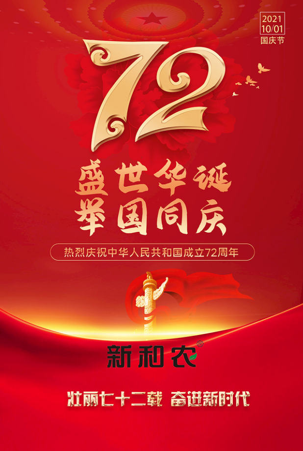 祖國是我們中華兒女的驕傲,尤其在國際局勢動蕩、新冠疫情肆虐的今天,我們更為祖國倍感自豪。國家強則民強,國家富則民富。在慶祝中華人民共和國成立72華誕的特殊時刻,全體新和農(nóng)人用牢記使命獻(xiàn)禮祖國,追求員工幸福感,追求客戶獲得感、追求社會責(zé)任感。我們將立足畜牧業(yè),發(fā)展好畜牧業(yè),為國家興旺發(fā)達(dá),為國民身體素質(zhì)、智力提高不懈努力,實現(xiàn)夢想共同富裕。
